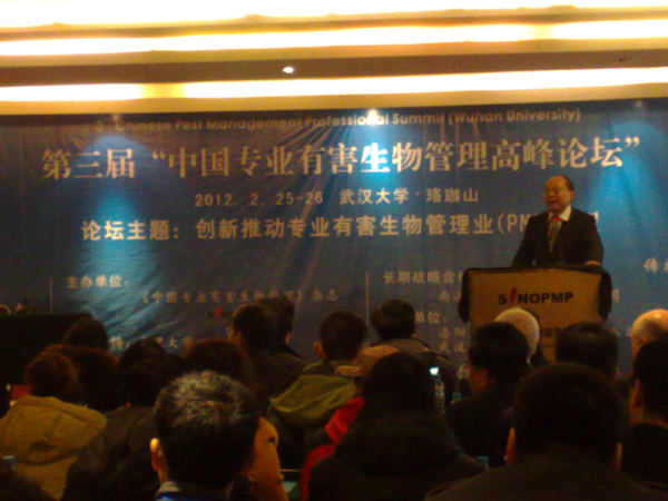 2012年2月25日—26日,第三屆“中國(guó)專(zhuān)業(yè)有害生物管理高峰論壇”在武漢舉行,圖為論壇現(xiàn)場(chǎng)